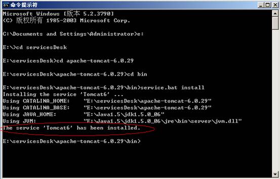 第一:把Tomcat6安装成windows 2003服务。