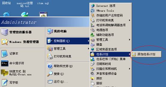 1、添加关闭Tomcat服务的任务计划:开始——控制面板——任务计划——添加任务计划,如图: