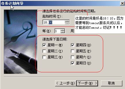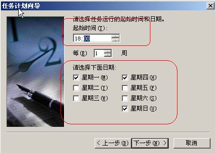 设置好任务计划的启动时间,一般建议在下班以后,没有人使用系统的时候进行,设置好任务计划运行的星期