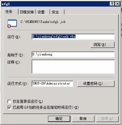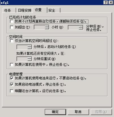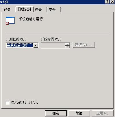 进入控制面板,打开任务计划,点击右键,新键->任务计划,给任务命一个容易理解的名字,如xfgl。