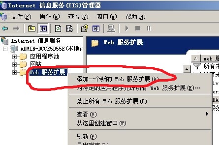 第一:打开IIS服务器. WEB 服务扩展,添加一个新的WEB 服务扩展.