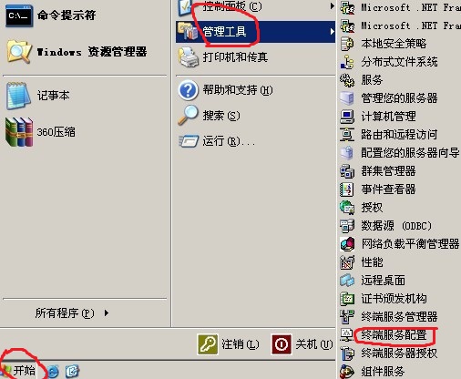 1、开始-管理工具-终端服务配置