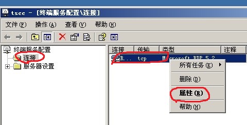 2、连接-RDPtcp-右键属性