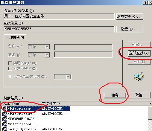 6、立即查找-选择Administrator 确定