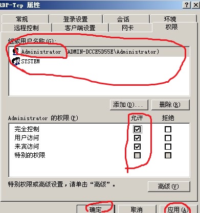 7、添加后给管理员Administrator 完全控制的权限应用-确定