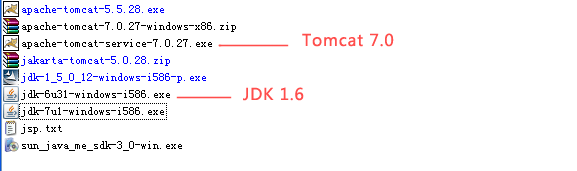 首先需要下载jdk1.6和tomcat7.0,可搜索下具体下载地址,我下载的如下图: