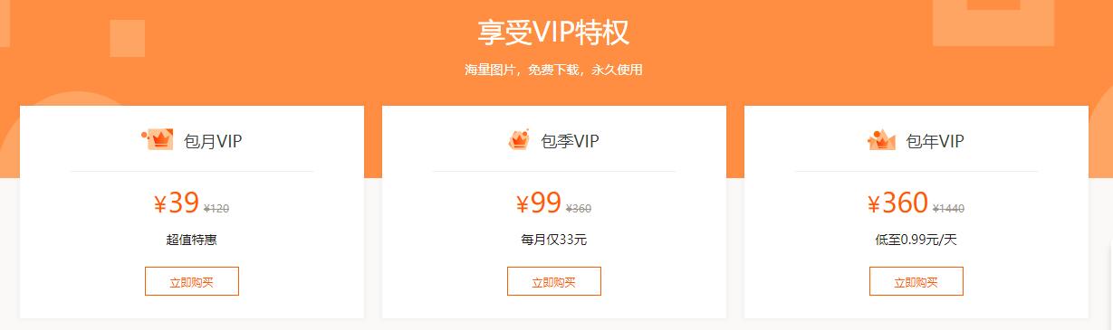如上图所示,阿里云正版图片 VIP 会员费用分为 3 个方式: