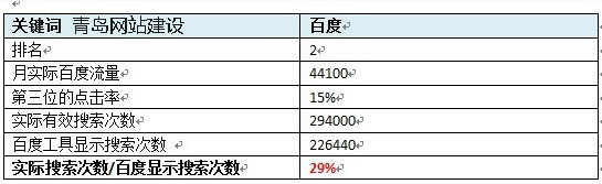 从表中可以看出“青岛网站建设”这个词的搜索次数要比工具查询的次数高,可以对比多个词的流量,得出这个行业的关键词搜索次数的高低比例。统计数据越多越准确,各个行业都不同,这就需要SEO进行详细分析统计了。