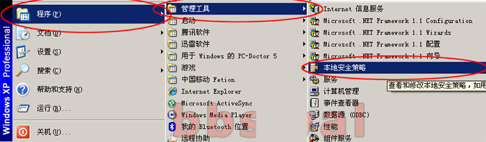 第一步:打开开始,程序,管理工具,本地安全策略如图: