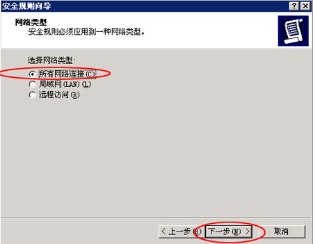 第十二步:在网络类型中选择“所有网络连接”,并点下一步