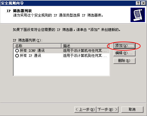 第十三步:在IP筛选器列表中,点击“添加(A)”