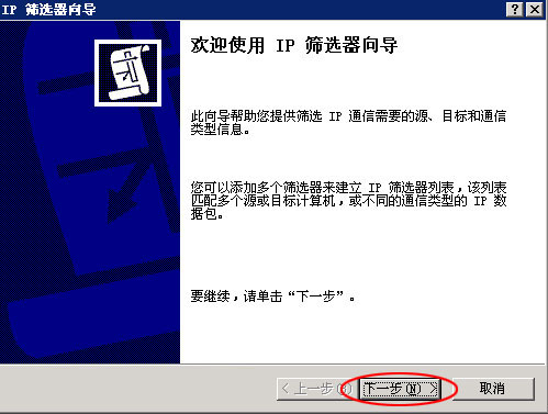 第十五步:在欢迎使用IP筛选向导中直接点击下一步