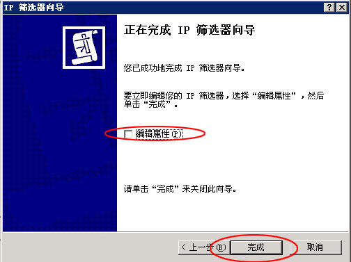 第二十一步:在完成IP筛选器中不选中编辑属性,然后点完成