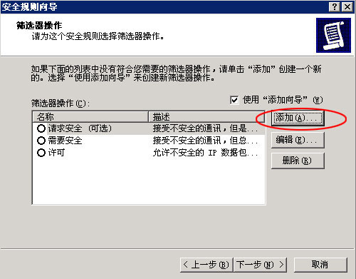 第十四步:在弹出的IP筛选器列表中点击“添加(A)”